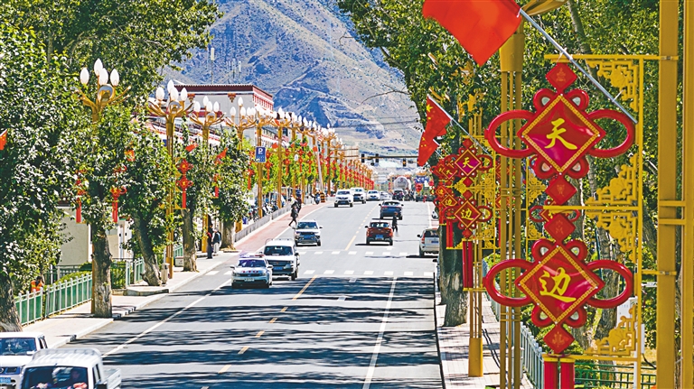 喜迎國慶,裝扮一新的拉薩市墨竹工卡縣縣城。記者 唐斌 通訊員 洛克 攝
