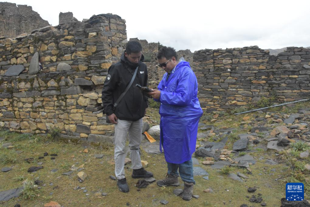 普查隊員正在采集和復(fù)核日喀則市桑珠孜區(qū)塔巴遺址本體邊界坐標(biāo)及單體范圍。新華社記者 春拉 攝