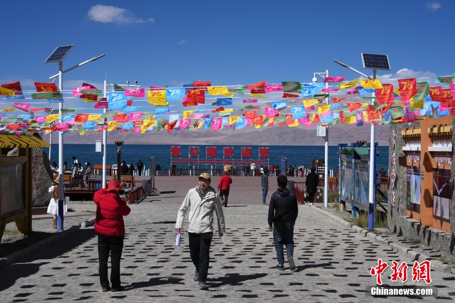 10月4日?!笆弧眹鴳c假期,不少游客來到西藏日土縣班公湖游玩。中新社記者 崔楠 攝