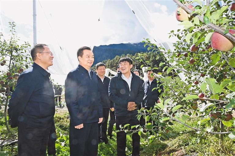 在巴宜區(qū)百巴鎮(zhèn)百巴村松贊帳篷營地、增巴村煙臺大山果業(yè)開發(fā)有限公司,王君正詳細(xì)了解了鄉(xiāng)村文旅融合、生態(tài)產(chǎn)業(yè)發(fā)展等情況。他指出,要加快推動文化旅游產(chǎn)業(yè)發(fā)展,堅持以文塑旅、以旅彰文,因地制宜探索新業(yè)態(tài)、新模式,培育品牌,惠及群眾,擴大影響,形成合力。堅持在保護中發(fā)展、在發(fā)展中保護,統(tǒng)籌生態(tài)修復(fù)和生態(tài)惠民,著力加強交通等基礎(chǔ)設(shè)施建設(shè),賦能鄉(xiāng)村全面振興。堅定不移把培育產(chǎn)業(yè)、發(fā)展產(chǎn)業(yè)、壯大產(chǎn)業(yè)擺在重要位置,立足特色優(yōu)勢資源,加強農(nóng)牧業(yè)技術(shù)推廣應(yīng)用,加快地方特色品種選育和良種繁育推廣,加大典型宣傳力度,發(fā)揮示范引領(lǐng),促進鄉(xiāng)村產(chǎn)業(yè)振興。完善利益聯(lián)結(jié)機制,持續(xù)發(fā)展壯大村集體經(jīng)濟和實體產(chǎn)業(yè)項目,推動農(nóng)業(yè)增效益、農(nóng)民增收入、農(nóng)村增活力,實現(xiàn)各民族共同發(fā)展、共同富裕。