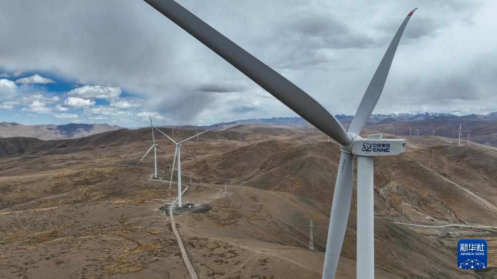 10月17日拍攝的位于西藏日喀則市薩迦縣的風力發(fā)電機組。新華社記者 晉美多吉 攝??