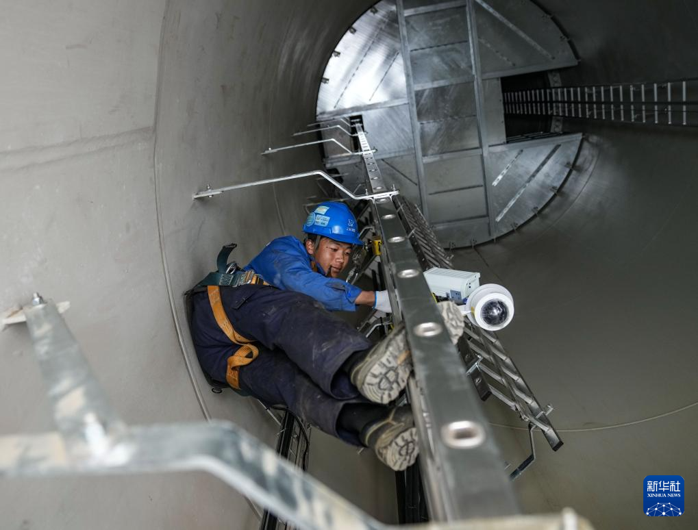 10月17日,工作人員在檢修風機內(nèi)部的監(jiān)控設備。新華社記者 晉美多吉 攝??