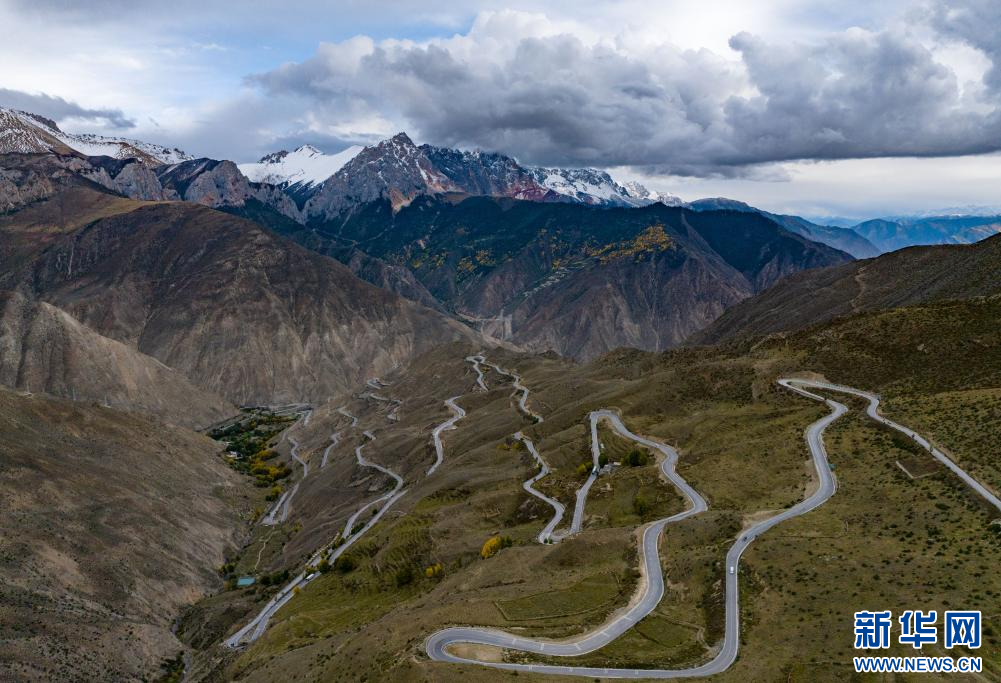 10月13日拍攝的川藏公路“怒江72拐”(無人機照片)。新華網 旦增努布 攝