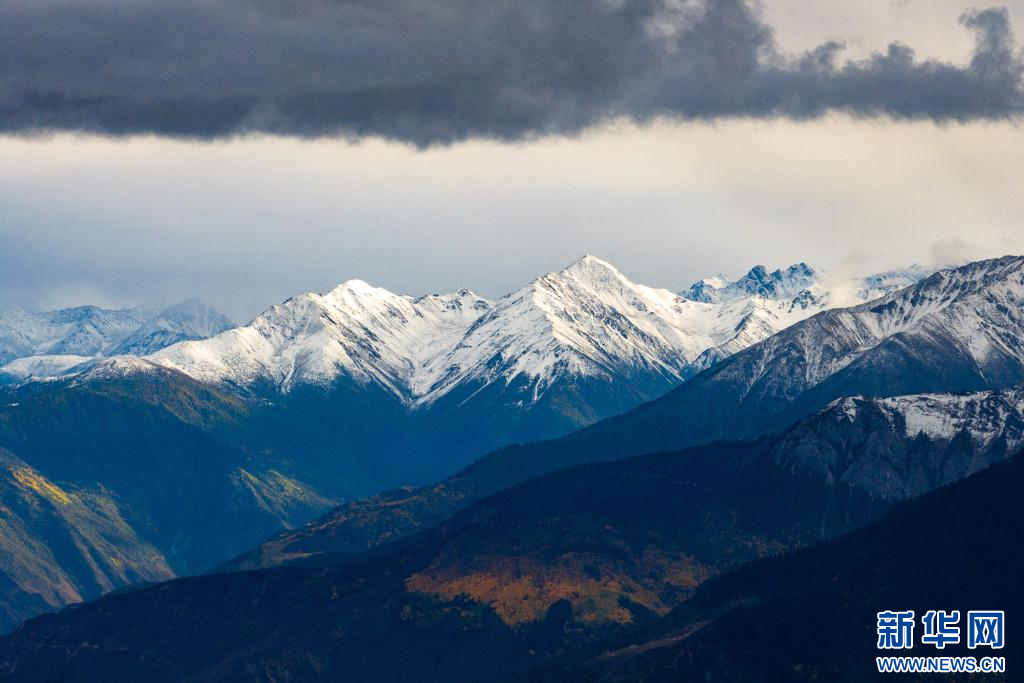 10月13日,在西藏昌都市八宿縣境內川藏公路沿途拍攝的雪山(無人機照片)。新華網 旦增努布 攝