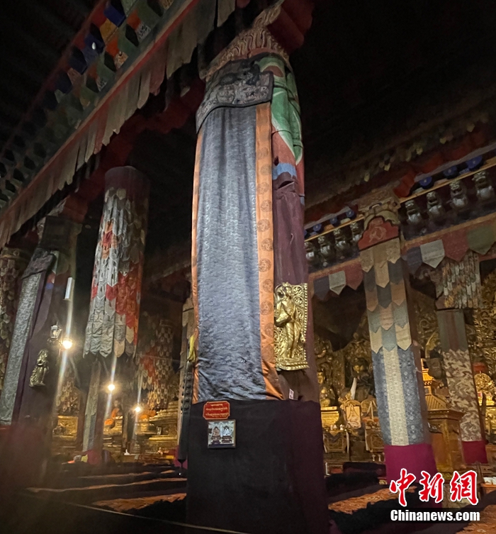 薩迦寺大殿內(nèi)的“忽必烈皇帝柱”。薩迦寺供圖