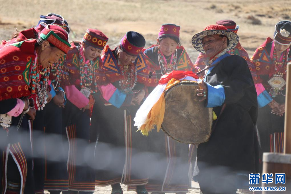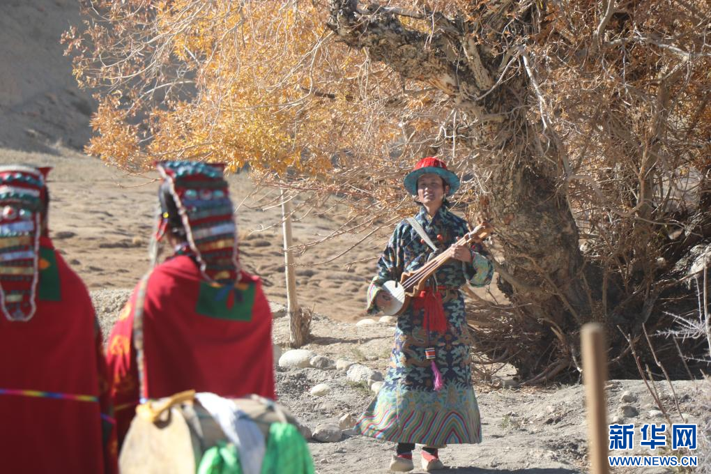 這是樂(lè)手格瑪扎西群覺(jué)身著傳統(tǒng)服飾進(jìn)行表演。新華社 發(fā)