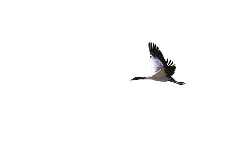 高原精靈黑頸鶴是世界上唯一一種生長(zhǎng)、繁殖在高原的鶴類(lèi)。它們體態(tài)優(yōu)美,身姿挺拔,羽毛黑白相間,頭部和頸部那一抹黑色猶如佩戴的神秘面紗,增添了幾分高貴與神秘。每年10月中下旬,它們都會(huì)展開(kāi)一場(chǎng)跨越千里的越冬之旅。它們飛越千山萬(wàn)水,來(lái)到西藏的濕地、草原和農(nóng)田中尋找溫暖與食物,續(xù)寫(xiě)著生命的傳奇。