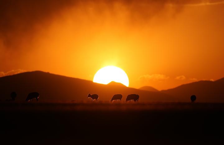 第二天清晨,我來到受傷母羊倒下的地方,它的生命已經(jīng)逝去。此時,一輪紅日正在從它身后升起,不一會兒,一大群懷孕的母羊從它身邊經(jīng)過,它們走出黑夜,走向朝霞與陽光,步履不停。