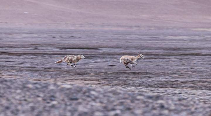 2024年6月14日,在西藏那曲市尼瑪縣境內(nèi)的羌塘國家級自然保護區(qū)“無人區(qū)”深處,一只野狼在追逐一只懷孕的母藏羚羊(視頻截圖)。新華社發(fā)(達瓦多吉攝)