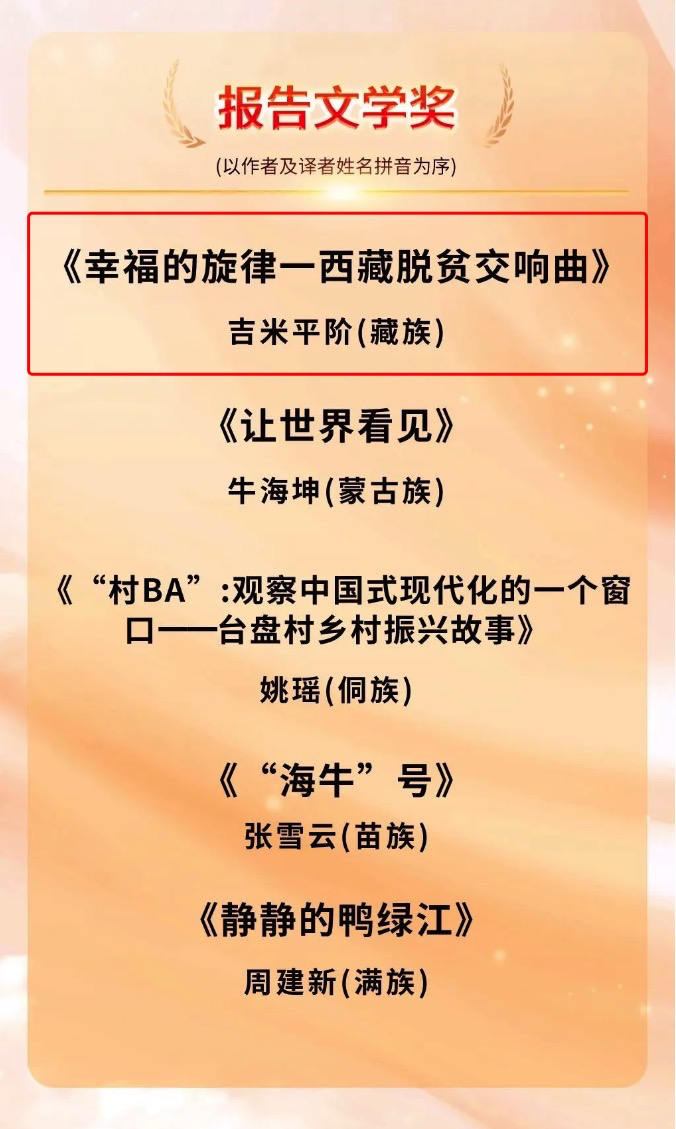 圖為第十三屆駿馬獎長篇小說獎和報告文學獎獲獎名單。(圖片來源于道中華微信公眾號)