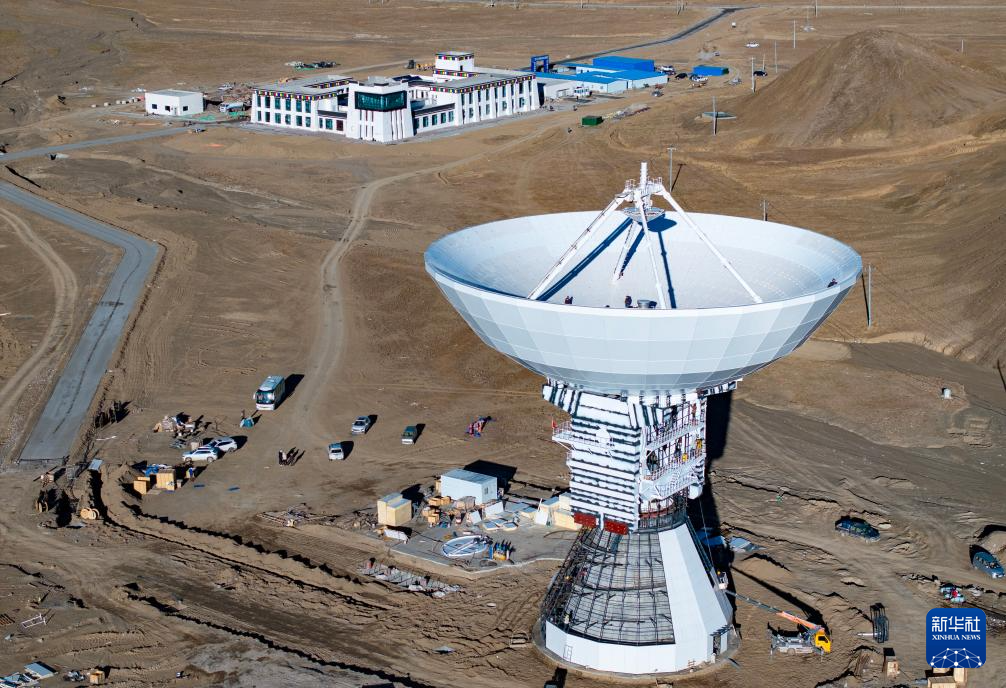建設中的日喀則40米射電望遠鏡(無人機照片,11月7日攝)。新華社記者 姜帆 攝