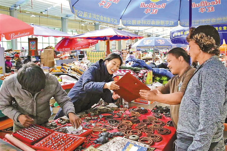 尼泊爾商戶(hù)加央在里孜口岸臨時(shí)交易市場(chǎng)。通訊員 西繞拉珍 記者 頓珠扎西 攝