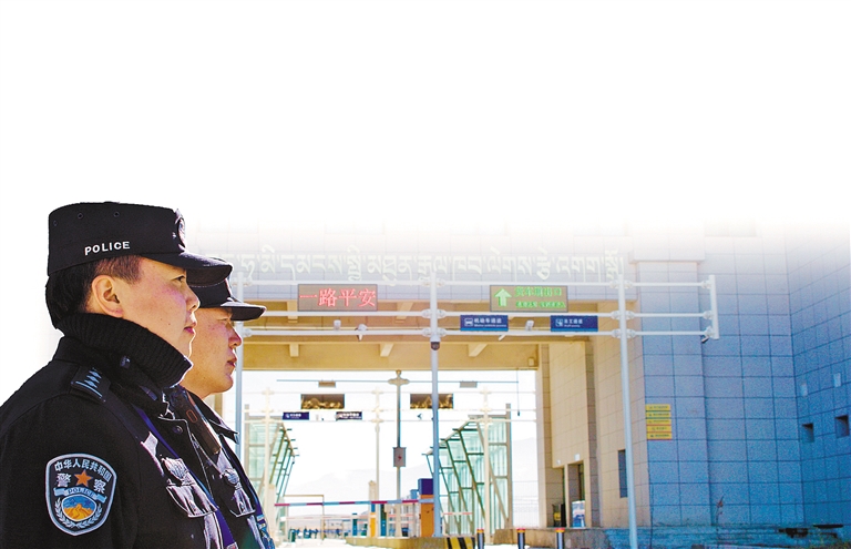 里孜邊檢站民警在執(zhí)勤。通訊員 西繞拉珍 記者 頓珠扎西 攝