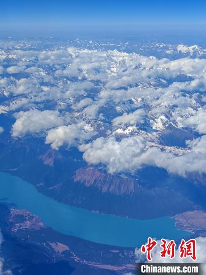 近日,中新網(wǎng)記者從云南昆明長(zhǎng)水國(guó)際機(jī)場(chǎng)乘機(jī)前往西藏自治區(qū)拉薩市,飛機(jī)穿過(guò)橫斷山脈,抵達(dá)雪域高原。望向窗外,沿途依次看到了玉龍雪山、南迦巴瓦雪山以及遠(yuǎn)遠(yuǎn)的念青唐古拉雪山等,還有很多小新也不知道名字的雪山,可謂實(shí)現(xiàn)了“雪山自由”。圖為11月13日,從飛機(jī)上俯瞰西藏林芝巴松錯(cuò)。記者 江飛波 攝