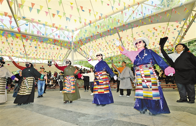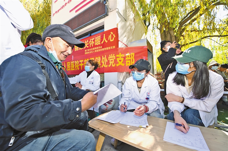 拉薩市策門林社區(qū)居民委員會(huì)聯(lián)合自治區(qū)人民醫(yī)院干部保健處黨支部在宗角祿康公園開展義診活動(dòng)。記者 唐斌 攝