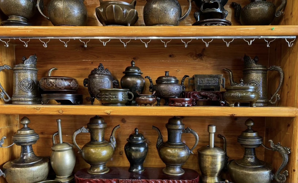 工藝品商戶:這是茶壺,搭在火爐上面邊燙邊喝的,是純手工做的,屬于藏文化……