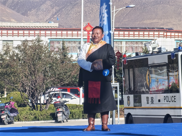 隨后,大賽在舞蹈《吉祥雅礱》中拉開序幕,來自山南市雅礱藝術(shù)團的舞者們翩翩起舞。路過此地的市民也被這場盛大的活動所吸引,紛紛駐足觀看。