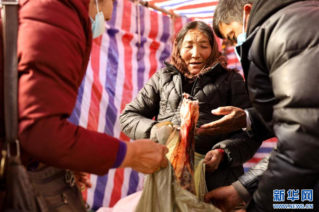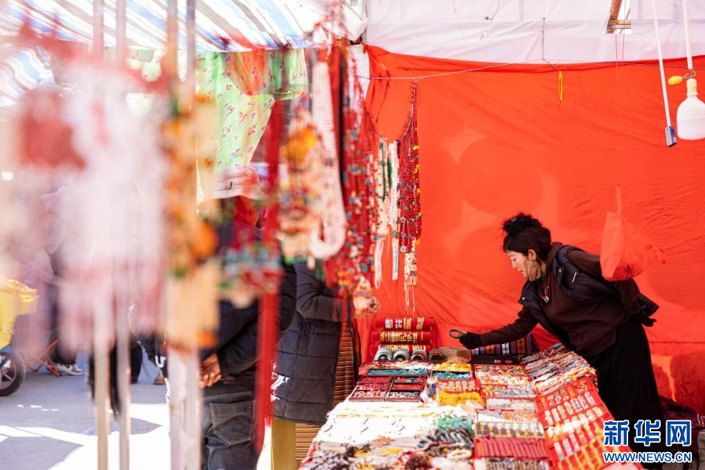 在現(xiàn)場(chǎng),人來(lái)人往,商品琳瑯滿目。扎念琴聲、推車聲、嬉笑聲此起彼伏,一派熱鬧繁忙的景象。