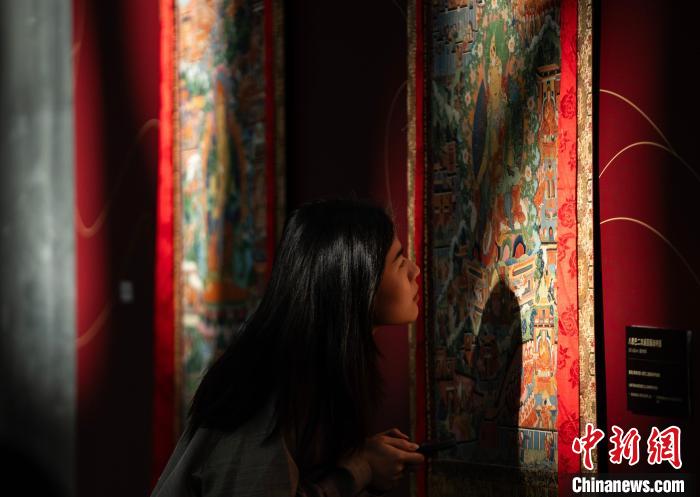 12月9日,“江河匯流 遍弘海內”西藏日喀則薩迦唐卡藝術展在香港西九龍高鐵站紫荊藝術展演空間揭幕,展覽首次向香港市民游客展示明代《八思巴畫傳》中部分唐卡藝術品的藝術微噴摹品,展現(xiàn)日喀則的文化底蘊。當天,“珠峰之鄉(xiāng) 情耀香江”日喀則招商引資和文旅推介活動也同步舉行。圖為來賓參觀精美的唐卡摹品。中新網記者 侯宇 攝
