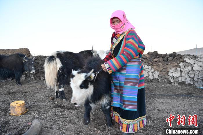 12月12日,西藏自治區(qū)那曲市安多縣帕那鎮(zhèn)牧民土巴卓瑪準(zhǔn)備去擠牦牛奶。中新社記者 貢嘎來松 攝