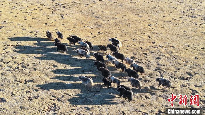12月12日,西藏自治區(qū)那曲市安多縣帕那鎮(zhèn)牧民土巴卓瑪家的牦牛。(無人機(jī)照片)中新社記者 薛蒂 攝