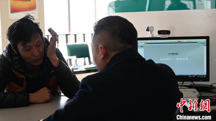 圖為當?shù)剞r(nóng)牧民在銀行咨詢金融業(yè)務?!≈x牧 攝