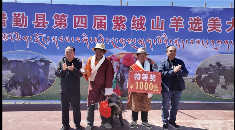 措勤縣紫絨山羊選美大賽現(xiàn)場(chǎng)。