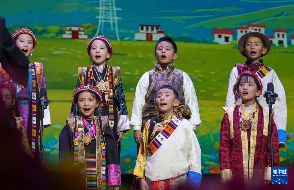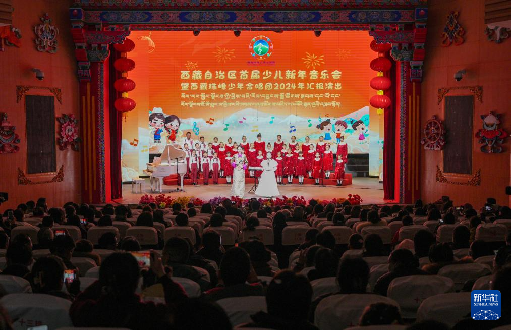 12月28日拍攝的西藏首屆少兒新年音樂會暨西藏珠峰少年合唱團2024年匯報演出現(xiàn)場。