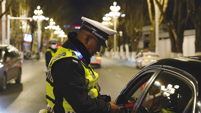 “謝謝您的配合,提前祝您元旦快樂?!崩_市公安局交警支隊(duì)的民警們身穿反光背心、佩戴肩燈、手持酒精測試儀,在寒風(fēng)中有條不紊指揮車輛有序接受檢查。市民平先生在接受酒精測試儀檢查后,對民警們說了聲“謝謝”。他告訴記者:“在2024年最后一天,交警這么晚還堅(jiān)守在自己的崗位上,保護(hù)市民的出行安全,我心里非常感動(dòng),也非常欽佩他們。作為一名交通參與者,今后一定自覺摒棄交通陋習(xí),遵守交通法規(guī),爭做文明交通的倡導(dǎo)者、踐行者和維護(hù)者?!?/p>