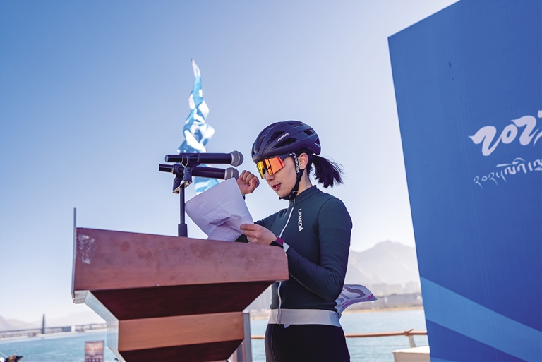 隨著發(fā)令槍響,選手們蹬踏出發(fā),瞬間點(diǎn)燃現(xiàn)場(chǎng)氣氛。經(jīng)過(guò)激烈角逐,各個(gè)組別的冠軍相繼產(chǎn)生。女子組冠軍由拉薩老隊(duì)員車隊(duì)的白瑪央吉摘得?!矮@得第一名,我感到非常榮幸和開(kāi)心。這個(gè)賽道設(shè)計(jì)得非常有挑戰(zhàn)性,沿途風(fēng)景如畫(huà)。這是我騎車的第五年,感謝主辦方提供了這個(gè)平臺(tái),讓我有機(jī)會(huì)與全國(guó)各地的優(yōu)秀選手同臺(tái)競(jìng)技,同時(shí)也要感謝我的隊(duì)友和教練的支持和鼓勵(lì)?!卑赚斞爰?dòng)地說(shuō)。
