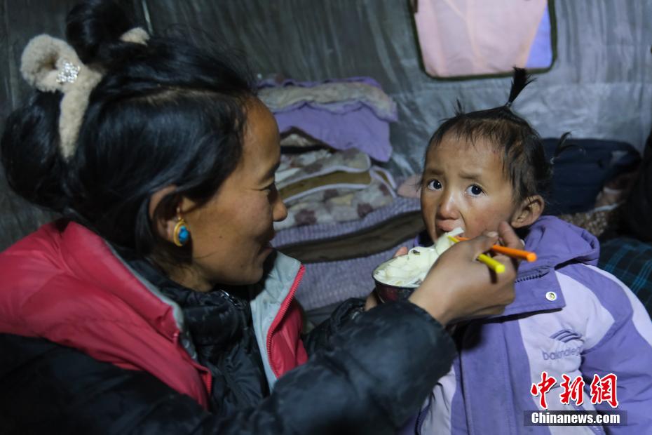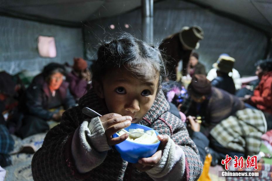 1月7日9時(shí)5分,西藏自治區(qū)日喀則市定日縣措果鄉(xiāng)附近(東經(jīng)87.45度,北緯28.50度)發(fā)生6.8級(jí)地震。日喀則市官方介紹,經(jīng)初步排查,截至當(dāng)日15時(shí),地震共造成95人遇難,130人受傷,房屋損毀正在統(tǒng)計(jì)中。圖為日喀則拉孜縣境內(nèi)的村民在臨時(shí)搭建的帳篷里吃飯。中新社記者 江飛波 攝