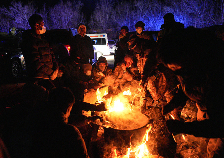 1月7日晚,安置點(diǎn)的受災(zāi)群眾在煮水準(zhǔn)備泡方便面。新華社記者 晉美多吉 攝