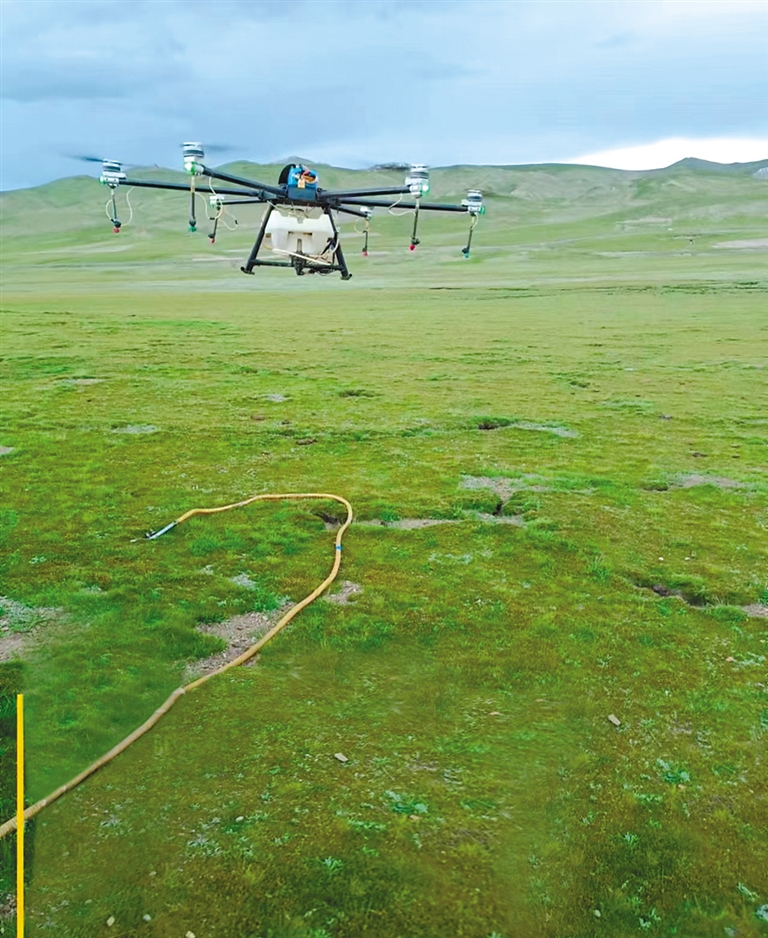 據介紹,高原毛蟲是西藏高原牧區(qū)的重要害蟲,多發(fā)生在海拔3000至5000米的高山草原,對莎草科、禾本科、豆科、蓼科、薔薇科等各類牧草危害嚴重,嚴重影響牧草生長和畜牧業(yè)的發(fā)展。在項目實施過程中,項目組確定使用植保無人機噴藥,防治高原毛蟲。