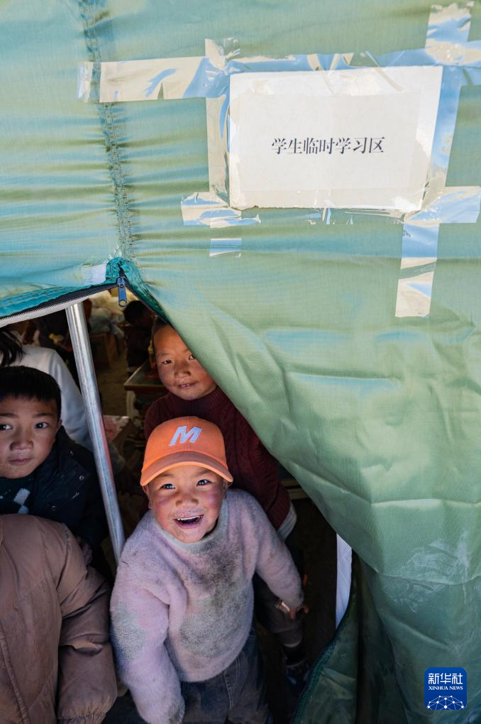 1月10日在定結(jié)縣郭加鄉(xiāng)乃村安置點(diǎn)學(xué)生臨時(shí)學(xué)習(xí)區(qū)拍攝的孩子們。新華社記者 丁增尼達(dá) 攝