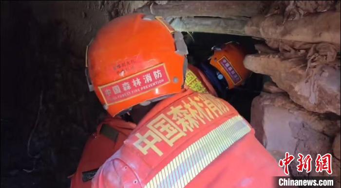 圖為日喀則市森林消防救援大隊隊員在受損房屋內搜尋受災村民財產(chǎn)。米瑪次仁 攝