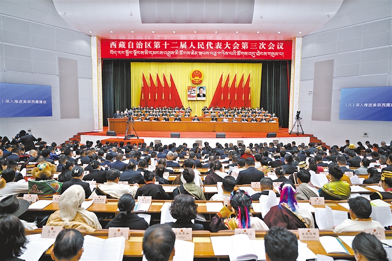 自治區(qū)十二屆人大三次會(huì)議開(kāi)幕會(huì)現(xiàn)場(chǎng)。西藏日?qǐng)?bào)記者 旦增西旦 攝
