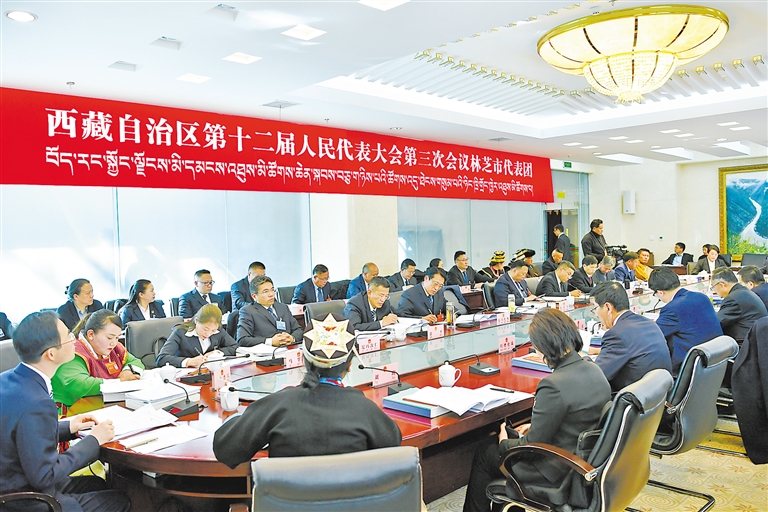 林芝市代表團(tuán)審議政府工作報(bào)告。西藏日?qǐng)?bào)記者 次仁平措 攝