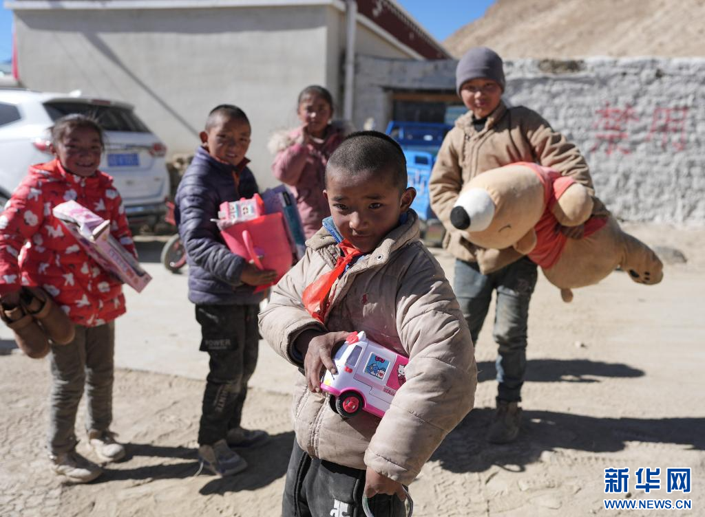 1月11日,災(zāi)區(qū)的孩子們領(lǐng)到了愛(ài)心人士捐贈(zèng)的玩具。新華社記者 晉美多吉 攝
