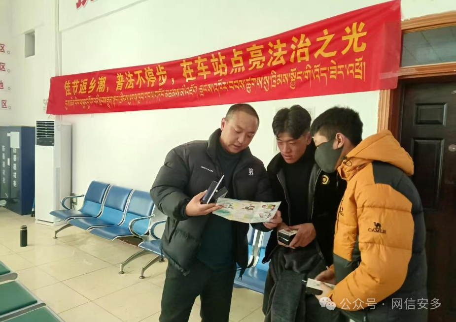 2025年1月23日,在蛇年春節(jié)返鄉(xiāng)潮的高峰,安多縣普法辦聯(lián)合縣禁毒辦在安多火車(chē)站開(kāi)展以“佳節(jié)返鄉(xiāng)潮,普法不停步,在車(chē)站點(diǎn)亮法治之光”為主題的宣傳活動(dòng),為歸心似箭的旅客們送上了一份特殊的“法律年貨”。