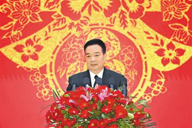 王君正在致辭中說(shuō),2024年是西藏經(jīng)濟(jì)社會(huì)發(fā)展歷程中不平凡的一年。自治區(qū)黨委團(tuán)結(jié)帶領(lǐng)全區(qū)各族干部群眾,深入貫徹落實(shí)習(xí)近平總書記關(guān)于西藏工作的重要指示和新時(shí)代黨的治藏方略,緊緊圍繞“四件大事”落實(shí),努力推動(dòng)長(zhǎng)治久安和高質(zhì)量發(fā)展取得新成效。牢固樹立總體國(guó)家安全觀,堅(jiān)持警鐘長(zhǎng)鳴、警惕常在,把維穩(wěn)工作做在日常、做到經(jīng)常、落實(shí)在基層,加快推進(jìn)依法治藏,建設(shè)更高水平的法治西藏,確保社會(huì)大局持續(xù)和諧穩(wěn)定,長(zhǎng)治久安的基礎(chǔ)更加牢固。完整準(zhǔn)確全面貫徹新發(fā)展理念,落實(shí)“三個(gè)賦予一個(gè)有利于”總要求,傳統(tǒng)產(chǎn)業(yè)提質(zhì)增效,新興產(chǎn)業(yè)加快發(fā)展,營(yíng)商環(huán)境持續(xù)優(yōu)化,努力推動(dòng)經(jīng)濟(jì)社會(huì)高質(zhì)量發(fā)展,確保經(jīng)濟(jì)發(fā)展當(dāng)前有活力、未來(lái)有潛力。(下轉(zhuǎn)第二版)(緊接第一版) 堅(jiān)持以人民為中心的發(fā)展思想,持續(xù)改善各族群眾的生產(chǎn)生活條件,改進(jìn)工作方式方法,采取針對(duì)性措施解決好群眾關(guān)心的醫(yī)療、教育、就業(yè)等實(shí)際問(wèn)題,西藏班招生規(guī)模不斷擴(kuò)大,全區(qū)城鄉(xiāng)面貌發(fā)生深刻變化,各族群眾的獲得感幸福感安全感持續(xù)增強(qiáng)。持之以恒推進(jìn)全面從嚴(yán)治黨,堅(jiān)決貫徹黨中央關(guān)于全面從嚴(yán)治黨的戰(zhàn)略部署,牢固樹立憑能力用干部、以實(shí)績(jī)論英雄的鮮明用人導(dǎo)向,努力建設(shè)一支忠誠(chéng)干凈擔(dān)當(dāng)?shù)母刹筷?duì)伍,黨的戰(zhàn)斗力、凝聚力、領(lǐng)導(dǎo)力、號(hào)召力不斷增強(qiáng)。日喀則市定日縣地震發(fā)生后,自治區(qū)黨委認(rèn)真貫徹落實(shí)習(xí)近平總書記重要指示精神和中共中央政治局常務(wù)委員會(huì)會(huì)議精神,按照黨中央、國(guó)務(wù)院決策部署,全區(qū)黨政軍警民齊心協(xié)力、協(xié)調(diào)聯(lián)動(dòng),廣大黨員干部勇于擔(dān)當(dāng)、沖鋒在前,科學(xué)救治受傷群眾,全力搶修基礎(chǔ)設(shè)施,妥善安置受災(zāi)群眾,確保了人民群眾生命財(cái)產(chǎn)安全,抗震救災(zāi)工作取得階段性勝利。西藏各項(xiàng)事業(yè)的發(fā)展進(jìn)步,是以習(xí)近平同志為核心的黨中央英明領(lǐng)導(dǎo)的結(jié)果,是習(xí)近平新時(shí)代中國(guó)特色社會(huì)主義思想科學(xué)指引的結(jié)果,是全區(qū)各族人民努力奮斗的結(jié)果。