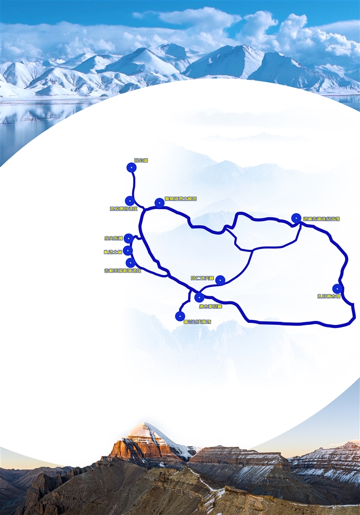 岡底斯山脈主峰岡仁波齊,圣潔莊嚴(yán),其獨(dú)特的金字塔形狀與周?chē)B綿的雪山交相輝映,勾勒出一幅雄渾壯闊、氣勢(shì)恢宏的冰雪畫(huà)卷。而發(fā)源于岡底斯山脈的獅泉河、象泉河、孔雀河、馬泉河四大河流,如同靈動(dòng)的畫(huà)筆在阿里高原上繪就了一幅幅絕美山河勝景。
