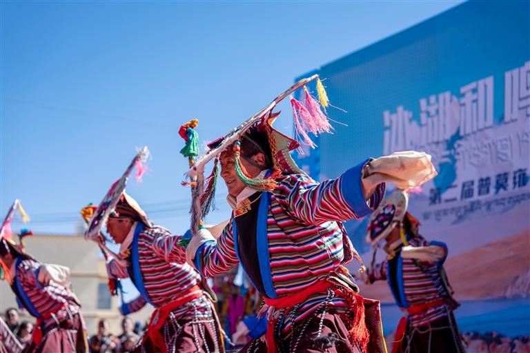 活動在浪卡子縣打隆鎮(zhèn)推瓦村舉辦。普莫雍錯冬季封凍后,會形成如夢如幻的幽藍(lán)冰面,因此被贊譽(yù)為“中國貝加爾湖”。每年2月前后,當(dāng)湖面完全冰封,推瓦村村民便會集結(jié)羊群,趕著它們踏上冰面,前往湖心島過冬,這一延續(xù)千年的冰上趕羊傳統(tǒng),承載著深厚的歷史文化底蘊(yùn)。