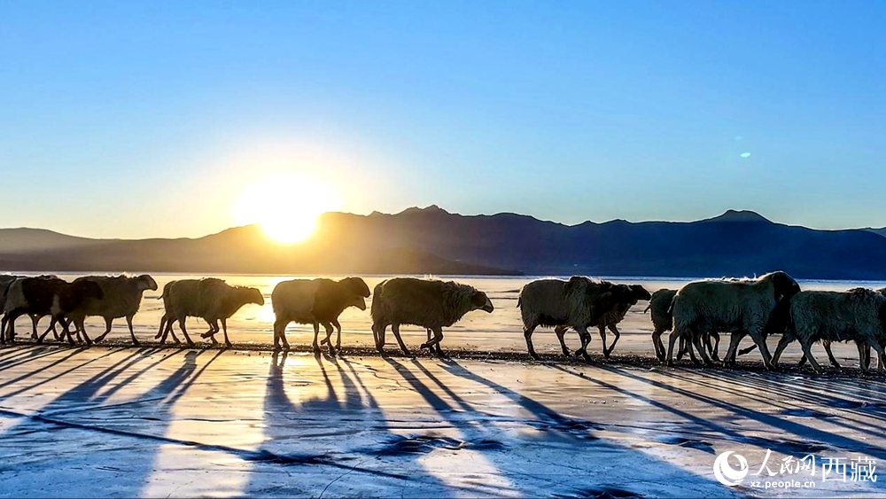 普莫雍錯(cuò)“冰上趕羊”,是當(dāng)?shù)啬撩袷来鄠鞯墓爬现腔?。每年冬季,由于推瓦村海拔高、夏季短,草?chǎng)無(wú)法為羊群提供充足的過(guò)冬飼料。因此,每年高原最冷的時(shí)候,推瓦村牧民會(huì)把羊群趕到普莫雍錯(cuò)水草豐茂的湖心島,依靠島上的草料度過(guò)最寒冷的冬期。