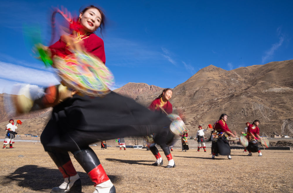 新年伊始,在西藏昌都市丁青縣尺犢鎮(zhèn)的草壩上,烏巴村文藝演出隊正在熱火朝天地排練。盡管寒風(fēng)凜冽,但激昂的鼓點和熱烈的音樂,讓這片土地充滿了生機(jī)與活力。