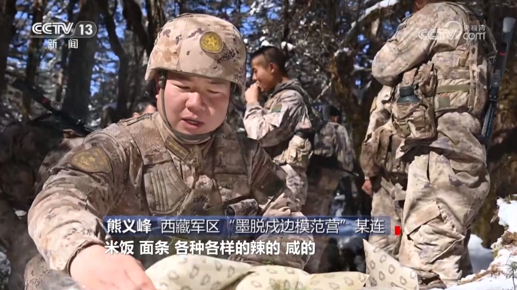 西藏軍區(qū)“墨脫戍邊模范營”某連熊義峰:“我們現(xiàn)在單兵自熱食品品種非常豐富,米飯、面條,各種各樣的,辣的、咸的,能夠滿足廣大官兵的口味需求。然后它的操作也非常簡單,就是加點(diǎn)水,操作非常便捷,熟得也很快,第三個(gè),它這個(gè)熱量提供非常充足。因?yàn)槲覀冊谘策壜飞弦?jīng)常爬山,體力消耗很大,所以需要快速補(bǔ)充能量?!?/p>