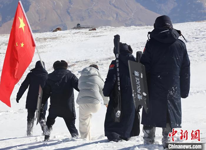 在元宵節(jié),李嘉興執(zhí)意要跟隨丈夫體驗一次巡邊。因此,此次巡邏隊伍中,不僅有經(jīng)驗豐富的老警員,也有初到高原的新警,更有這位初來乍到的警嫂。大家手拉著手,踩著厚厚的積雪艱難前行,途中還不時互相提醒小心腳下,注意安全。