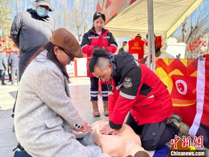 圖為志愿者正在為民眾現(xiàn)場演示急救演練。澤塔雍措 攝