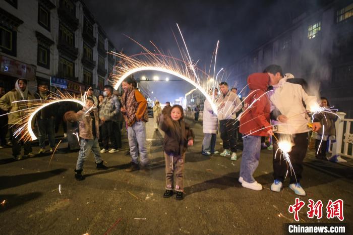 藏歷新年是西藏傳統(tǒng)民俗活動(dòng),也是中國國家級(jí)非物質(zhì)文化遺產(chǎn)。2月27日,西藏迎來一年一度的藏歷新年古突夜(類似春節(jié)的除夕),如今過古突夜,西藏民眾在點(diǎn)燃火把的同時(shí),也會(huì)燃放煙花,古城拉薩煙花璀璨。圖為2月27日晚,孩子們在拉薩街頭燃放煙花,慶祝藏歷新年的到來。中新社記者 江飛波 攝