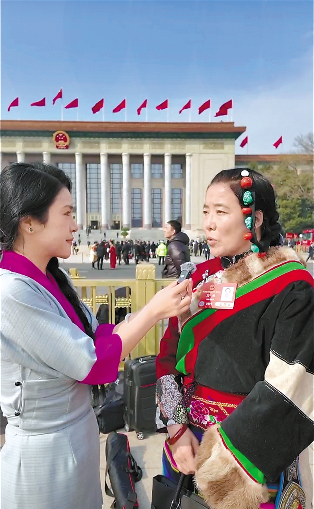 黨的光輝照邊疆,邊疆人民心向黨?!?024年,我們縣迎來兩件大喜事,一是縣人民醫(yī)院新院址投入使用,院區(qū)整潔、漂亮,醫(yī)院技術(shù)裝備也更新升級(jí),進(jìn)一步實(shí)現(xiàn)了家門口‘能看病’到‘看好病’的飛躍;二是縣第二中學(xué)竣工,現(xiàn)代化的新校舍進(jìn)一步實(shí)現(xiàn)了‘辦好牧民家門口的優(yōu)質(zhì)學(xué)校的目標(biāo)’。這次全國兩會(huì)上,我會(huì)把這些好消息分享給其他代表委員,讓他們知道在黨的堅(jiān)強(qiáng)領(lǐng)導(dǎo)下,西藏確確實(shí)實(shí)富起來、好起來了?!逼涞录?dòng)地介紹說。