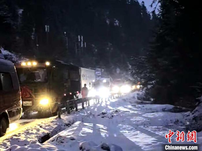 當(dāng)夜幕降臨之時(shí),大風(fēng)夾著雪粒呼嘯不止,山上的氣溫也越來越低,部分司乘人員出現(xiàn)焦慮,官兵們一邊耐心地安撫司乘人員焦急的情緒,一邊有條不紊地指揮車輛緩緩挪動(dòng)。